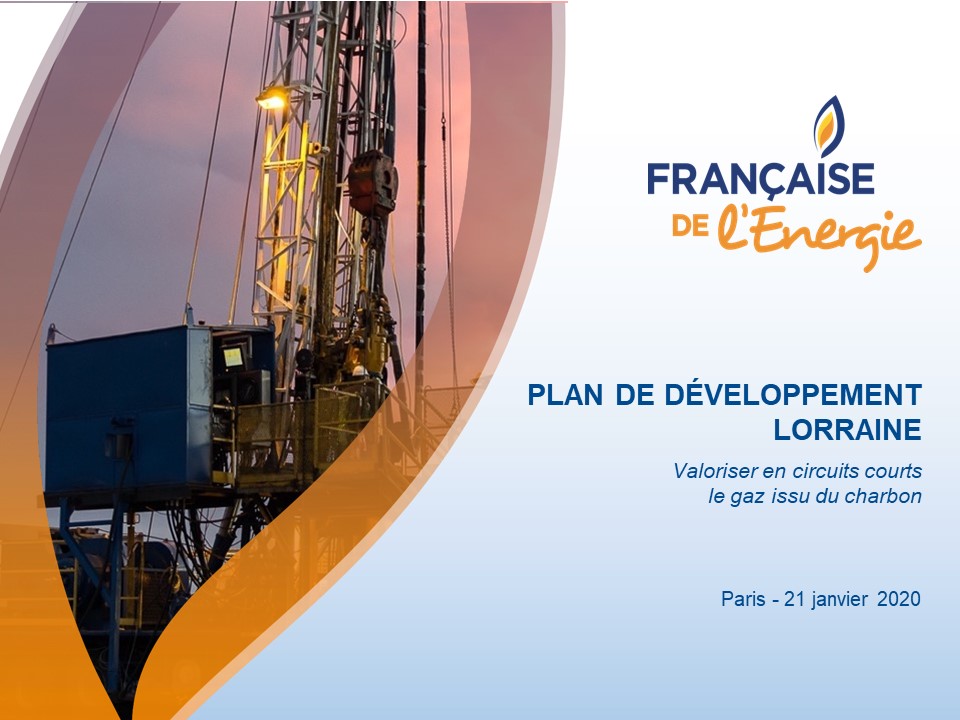 La Française de l’Energie a présenté le 21 janvier 2020 son plan de développement de ses sites de Lorraine afin de valoriser les 2,14 milliards de m3 de gaz déjà certifiés à ce stade (réserves 2P).